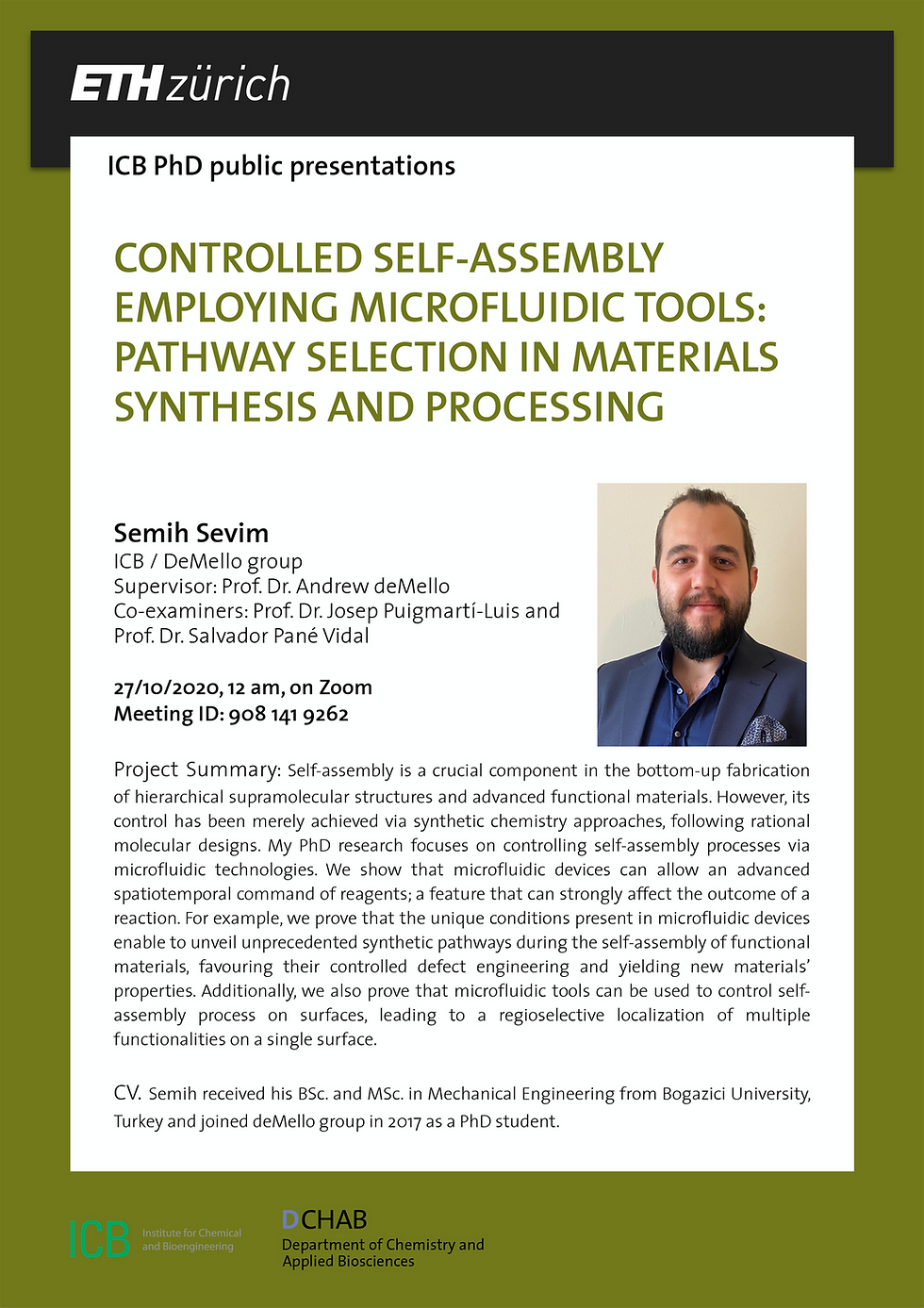 PhD public presentation by Semih SevimYun DingOct 27, 20201 min readUpdated: Mar 24, 2021Controlled Self-Assembly Employing Microfluidic Tools: Pathway Selection in Materials Synthesis and ProcessingFlyer PhD_Sevim.pdfDownload PDF • 299KB